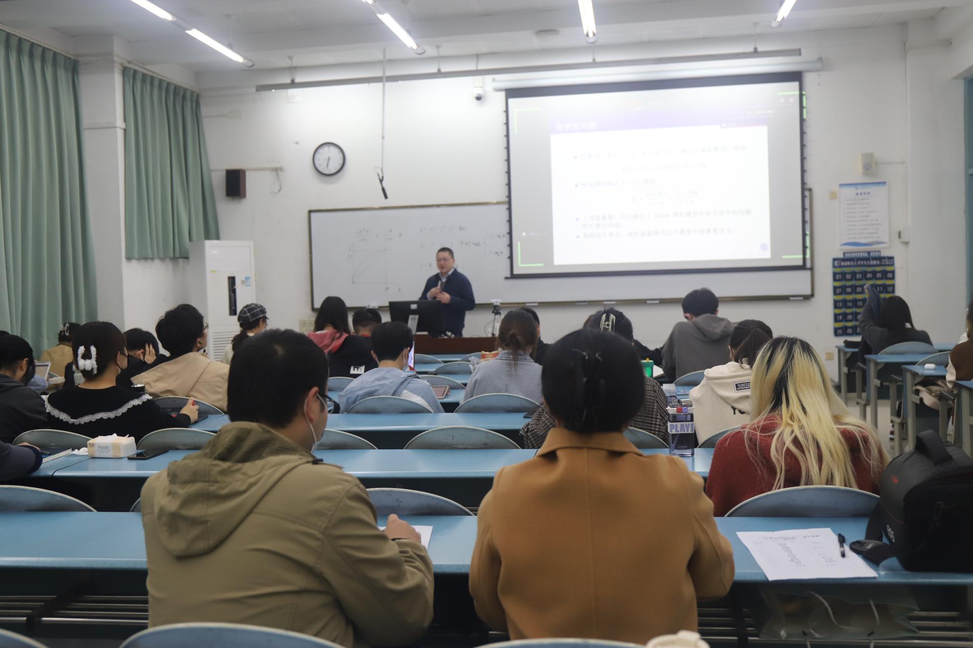 11月10日晚上,青年教师集中观摩了陈师教授的《中级宏观经济学》课程。陈师教授的中级宏观经济学曾获评四川省级线上一流本科课程、四川省级线上线下混合式一流本科课程、四川省级精品在线开放课程。陈师教授在本堂课程中讲授了竞争性均衡的相关内容,通过逻辑清晰的板书,详细阐述了索洛增长模型的重要含义。同时深入浅出地将思政元素融入到专业知识的讲解之中,达到了课程思政教学的效果,青年教师们仔细聆听并书写了详细的观摩记录。