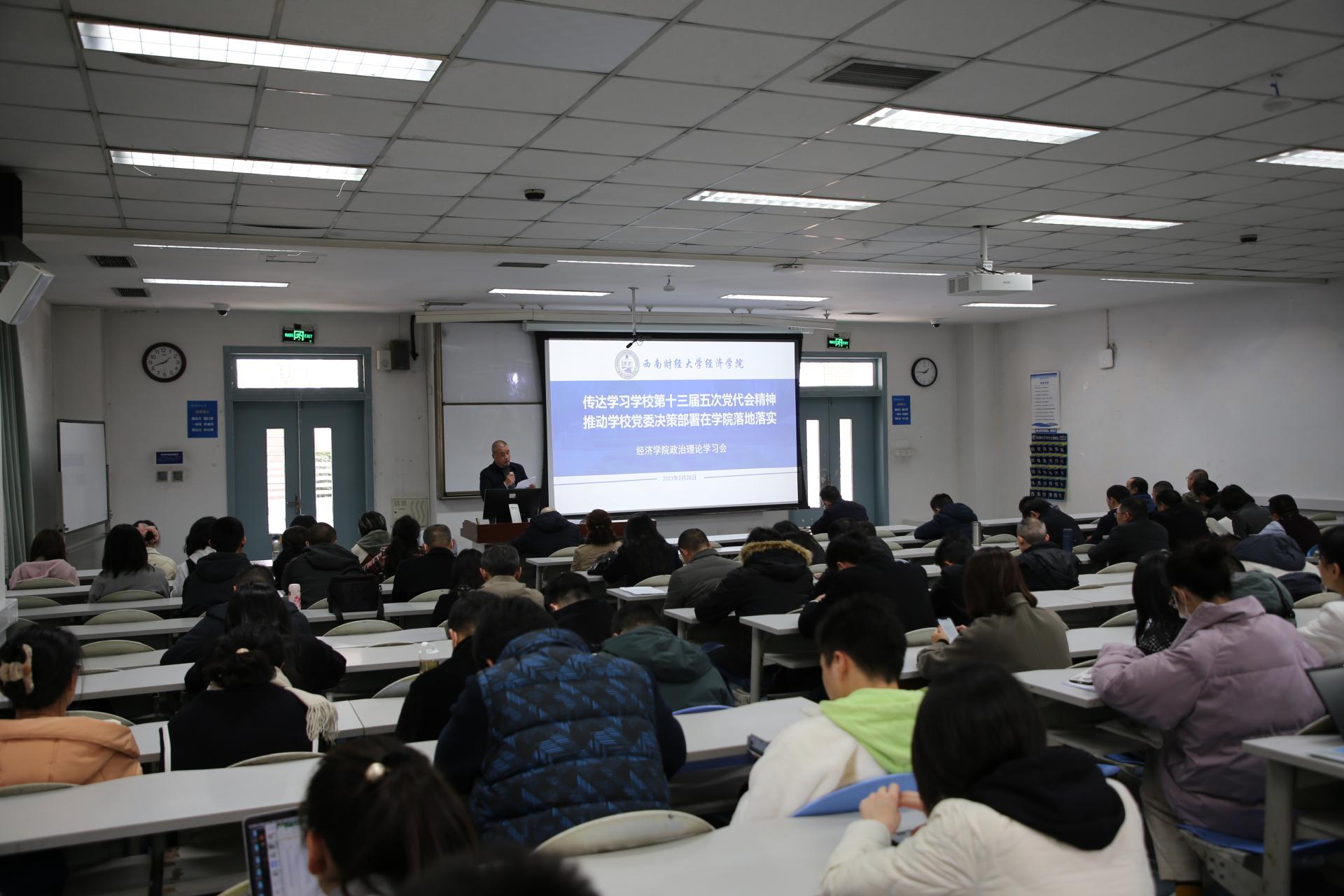 3月12日,韩文龙副经理以《构建新发展格局促进中国经济高质量发展》为题在读书班上作了专题报告。他将学习贯彻党的二十大精神与研究阐释习近平经济思想结合起来,从新发展格局与经济高质量发展的辩证关系出发,阐释了我国经济高质量发展的路径选择,对教师们深入学习领会党的二十大报告中“加快构建新发展格局,着力推动高质量发展”的篇章做了很好的辅导。