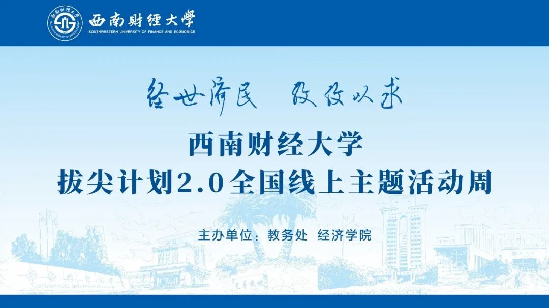 8月26日至8月31日,Mksport体育app官网入口经济学拔尖员工培养基地筹划了以“经世济民 孜孜以求”为主题的拔尖计划2.0全国线上主题活动周。本次主题活动周由教务处和Mksport体育主办,依托国家经济学拔尖员工培养基地,精心组织了朋辈分享、读书分享会以及名师讲座等各具特色的主题活动,展示了西财师生关注经济、关切民生的家国情怀和“学以报国”的崇高追求。本次线上主题活动周通过线上书院平台进行直播,4场活动最高观看数量达到了1387人次,平均观看数量达670人次,得到了全国拔尖基地师生的广泛关注和认可。