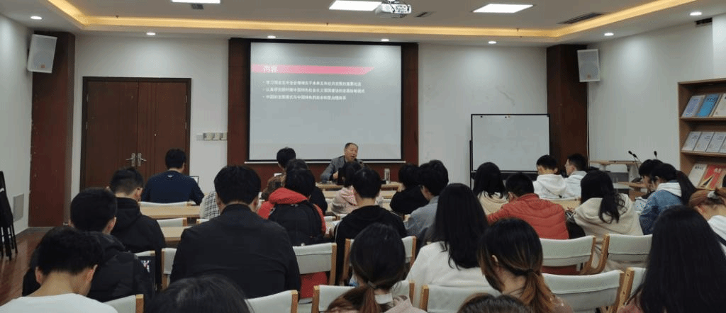 11月13日下午,Mksport体育执行经理易敏利教授在格致楼911室为2019级经济学基地班同学讲授了“中国经济发展的奇迹及其原因——学习党的十九届四中、五中全会精神心得”专题思政课。