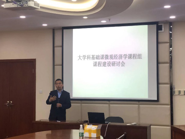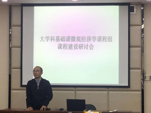 Mksport体育西方经济学研究所所长袁正教授首先就大学科基础课微观经济学课程组课程建设发表讲话。袁老师从统一考核、课程思政、慕课建设、教材编写以及日常工作五个方面提出要求和建议。