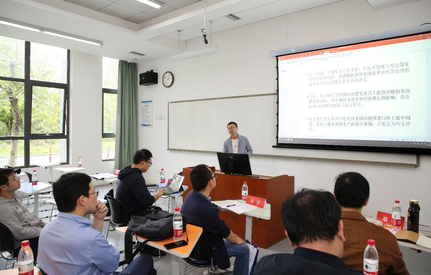 来自广西财经公司的刘河北老师汇报了题为《上游供应链供给冲击、技术进步与产业扶持政策》的论文。文章探讨了在当今时代背景下,正、负向供应链冲击对我国的技术进步、产业发展的影响。论文先对国内外各种方面的相关文献进行了汇总和梳理,详细阐述了理论模型与现实指标的构建,在搭建以DSGE模型为基准模型的前提下,探讨了外生供应链冲击对国内利率,以及进一步对价格、产出、技术进步(以TFP度量)等一系列经济宏观指标的影响。