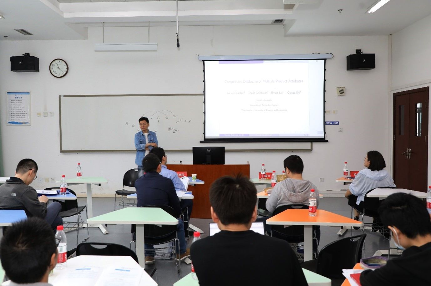 来自Mksport体育app官网入口的石启超老师汇报了题为《Competitive Disclosure of multiple product attributes》的论文。老师从产品差异化、信息披露成本、消费者行为三个角度,对企业信息披露行为的动机、收益、结果进行了探讨;构建了一个双元(双主体、双特质)微观模型,引入绝对优势和比较优势的概念,解释了不同产品的比较选择以及企业的信息披露行为选择;通过对企业信息披露行为的定义、阐述和推导,联系众多实际现实案例,得出了企业倾向于仅仅披露其最优势的绝对优势信息的结论。