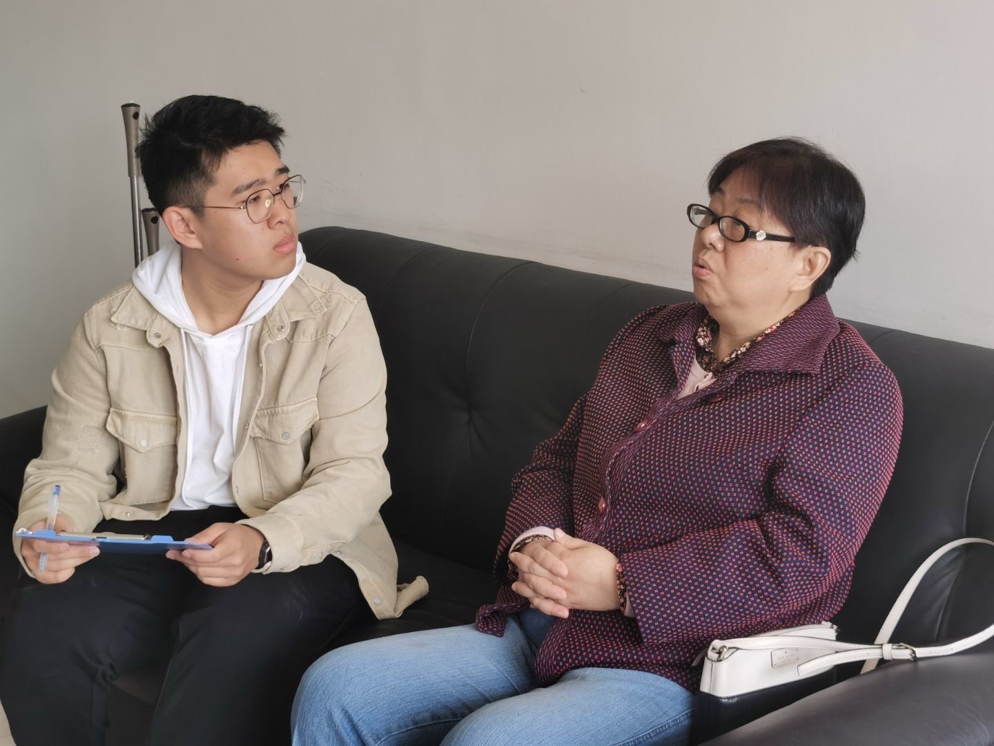 会上,吴研同学作为主持人,对涂晓青教授进行了采访。谈及如何坚守教育事业初心的问题,涂教授深入浅出地点明教育对她而言的重要意义,认为教育使她能够找到快乐与归属感,这让我们看到一个教育工作者的真挚。随后,吴研结合当今时政与老员工的疑惑,向涂教授提出了几个与老员工生活、职业发展相关的问题。