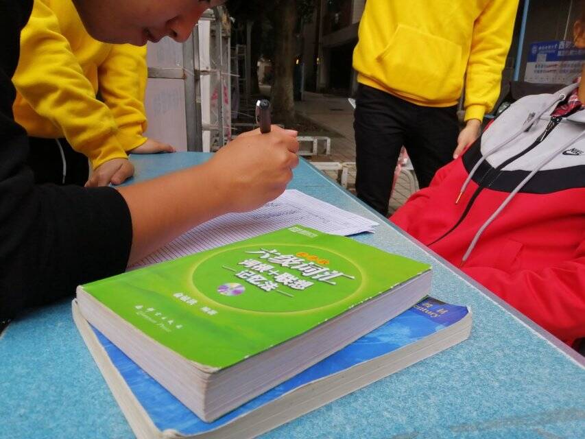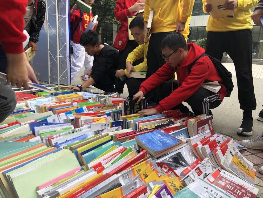 秉承着“往昔之迹,由君相继”的活动主题,青协小伙伴们真诚而卖力地吆喝着,吸引了一大批各年级、各专业的同学前来挑书。同学们对应有尽有的“秘籍”和“干货”精挑细选、再三斟酌,最后才如获至宝、心满意足地挑出自己最中意的书籍。激烈的讨论声夹杂在轻快而热闹的空气中,凝结在一丝丝秋波荡漾般的笑颜。时光静淌,带走了刻满学长学姐期望的书籍,留下了同学们的喜悦与激动。不觉间,原本密密麻麻的书籍已变得寥若晨星。
